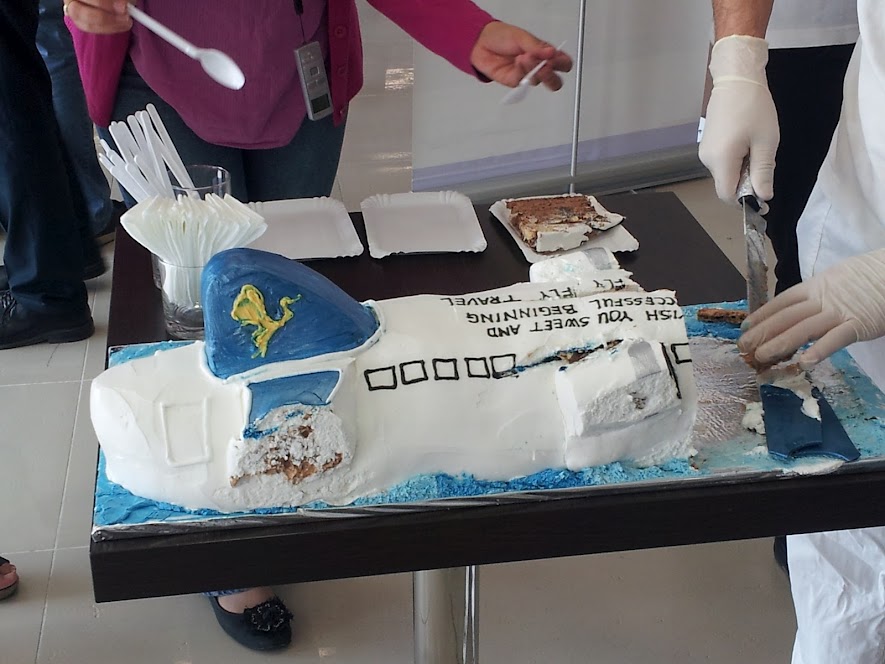 Avion je dočekan svečano, kako to dolikuje uz vodene topove, a gosti su na koktelu bili posluženi tortom u obliku aviona, što je takođe svetska tradicija kada se uspostavljaju nove linije.