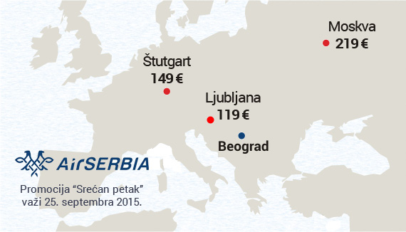 Nova jednodnevna promotivna akcija Air Serbije, poznata pod imenom "Srećan petak" je objavljena za 25. septembar.