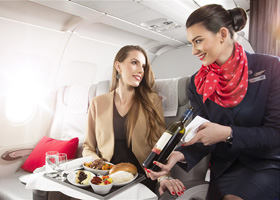 U selekciji obroka naročito se ističu glavna jela kao što su jagnjeći kotleti sa koricom od pistaća servirani sa grilovanim povrćem, pačetina sa sosom od šumskog voća servirana sa korenastim povrćem prelivenim bagremovim medom, i novi deserti kao što je čokoladni kolač ili voćne tartalete. Ovi novi a la carte obroci mogu da se naruče u biznis klasi na letu do i iz Njujorka.