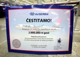 Tog dana se putnica Marina Jovanović se prijavila na let JU 380 iz Beograda za London i ona je dobila na poklon dve povratne karte u biznis klasi na bilo kojoj od 39 destinacija ka kojoj Air Serbia leti direktno.
