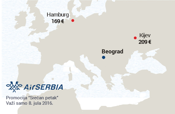 Nova jednodnevna promotivna akcija Air Serbije, poznata pod imenom "Srećni petak" je objavljena za 8. jul.