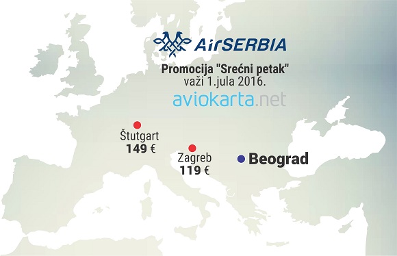 Nova jednodnevna promotivna akcija Air Serbije, poznata pod imenom "Srećni petak" je objavljena za 24. jun.