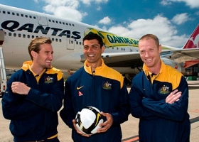 Svoj nacionalni tim podržao je i australijski Qantas, koji je kao i Lufthansa osmislio specijalan brend: "Qantas Socceroos" kojim je ukrasio avione. Jednim takvim u Brazil je otputovala i reprezentacija ove zemlje. Jedan džambo džet pre toga je dobio na svom trupu džambo fudbalsku loptu, a čuveni Qantasov kengur na repu je nosio kopačke.