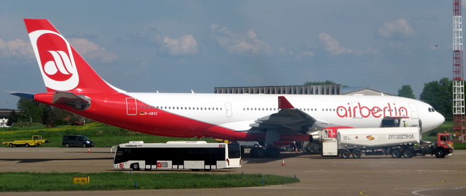 Foto: Putnički avion na udaljenoj "B" parking poziciji i autobus za prevoz putnika ispred