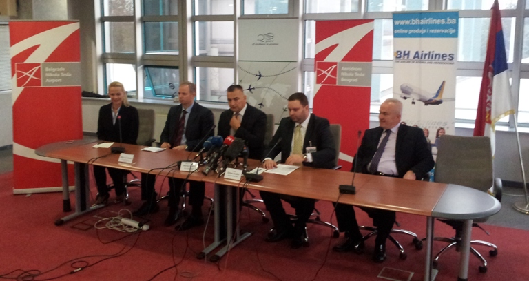 Današnjoj konferenciji za novinare koja je održana nakon promotivnog leta pristustvovali su šef prodaje beogradskog aerodroma „Nikola Tesla“, u svojstvu domaćina, koji je B&H Airlinesu poželeo dobrodošlicu i uspeh sa novom linijom, njegova ekselencija Ranko Škrbić, ambasador Republike Bosne i Hercegovine u Srbiji i Orhan Hodžić, direktor Oki Air Interationala, koji je prodajni predstavnik B&H Airlinesa za Srbiju. Kao iznenađenje za novinare na konferenciji se pojavio i generalni direktor B&H Airlinesa Amir Jažić.