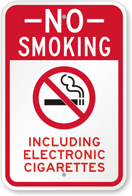 U poslednje vreme se mogu videti i sasvim novi znaci unutar aerodromskih terminala na kojima je jasno naglašena zabrana elektronskih cigareta (slika desno).