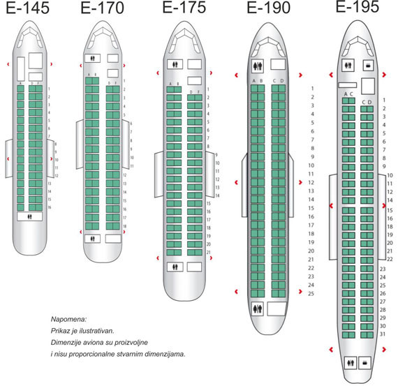 | Standardna konfiguracija sedišta | 1+2 (EM2, E45) 2+2(E75, E95) |