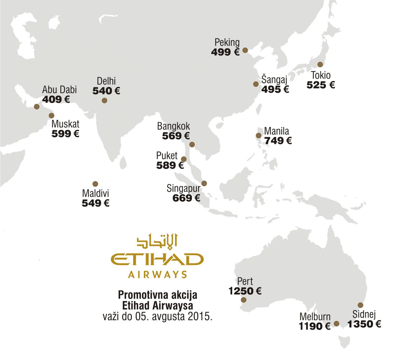 Iako je nedavno okončana prethodna, juče je započela nova promocija sa nekoliko izabranih popularnih azijskih i australijskih destinacija koja će trajati do 05. avgusta, za putovanja od 1. septembra do 19. decembra ove godine.