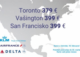 Air France i KLM su danas objavili promociju za tri grada u Severnoj Americi – Toronto u Kanadi, kao i Vašington i San Francisko u Sjedinjenim Državama.