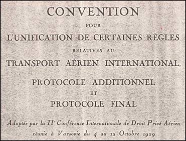 postavlja osnovu prava putnika u civilnom aviosaobraćaju. Ovom konvencijom uveden je set pravila za postupanje aviokompanija u slučaju incidenata tokom leta ili avionskih nesreća. Uvodi se odgovornost aviokompanija prema putnicima i vlasnicima transportovane robe i prtljaga.