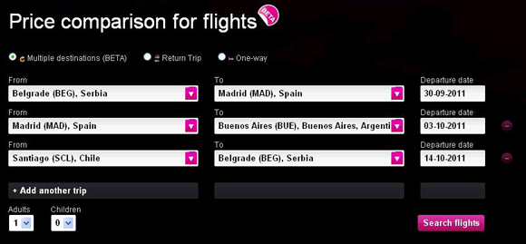 U okviru opcije za pretragu koja je nazvana "Multi destinations" putnik može pretraživati veoma komplikovane itinerere koji sadrže više destinacija, imaju zadržavanja (stop over), prekide putovanja pa čak i veće kružne ture koje sadrže do četiri segmenta.