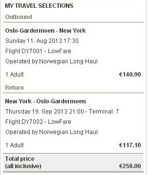 Norwegian će između Osla i Njujorka leteti tri puta nedeljno počev od 30. maja. Letovi će biti utorkom, četvrtkom i nedeljom u 17:30, sa dolaskom u Njujork na aerodrom JFK u 19:30 po lokalnom vremenu. Povratak je u 21 sat, a dolazak u Oslo narednog dana u 10:20.
