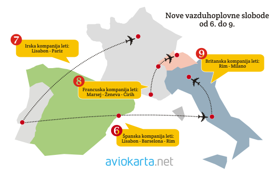 Evropske lowcost aviokompanije koje posluju po specifičnom multimodalnom konceptu razvijaju svoj saobraćaj iz većeg broja aerodromskih centara, a to im omogućava upravo Sedma sloboda koju masovno koriste zahvaljujući širokoj primeni Sporazuma o otvorenom nebu koji važi u Evropi.