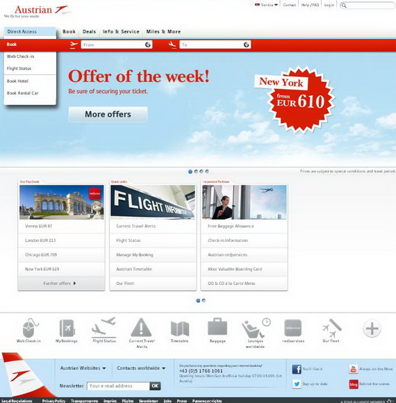 Krajem prošle nedelje Austrian Airlines je pokrenuo novi, redizajnirani kompanijski sajt na istoj web adresi – www.austrian.com.
