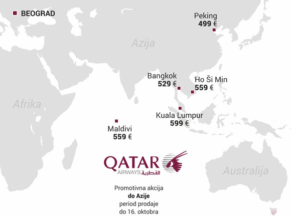 Qatar Airways od ove nedelje, pa do sredine oktobra nudi 5 svojih azijskih destinacija po veoma povoljnim cenama.