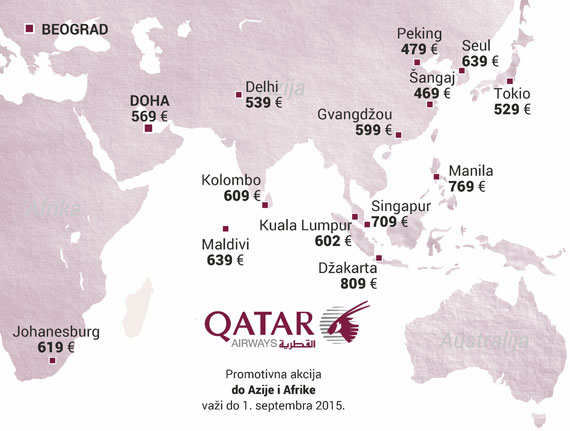 Qatar Airways, aviokompanija sa pet zvezdica, svojim putnicima nudi najkvalitetniju uslugu kako na zemlji tako i u vazduhu, a zahvaljujući direktnim letovima iz Beograda i naši putnici su u prilici da ocene njihov kvalitet na osnovu sopstvenog iskustva.