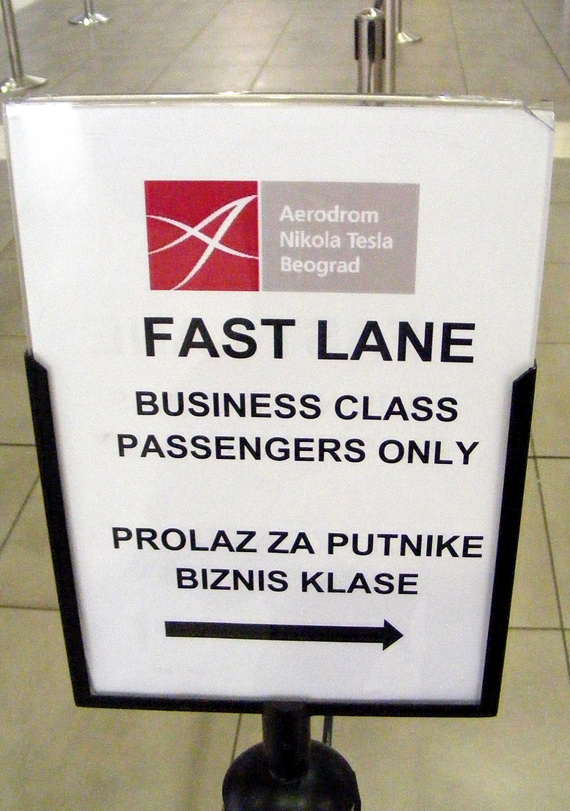 Ispred kontrolnog punkta aerodrom je postavio info pult na kome službenici usmeravaju putnike u običnu ili u tzv. brzu traku. Sa prestankom gužvi, brza traka će biti u potpunosti rezervisana za putnike biznis klase svih aviokompanija koje koriste beogradski aerodrom.