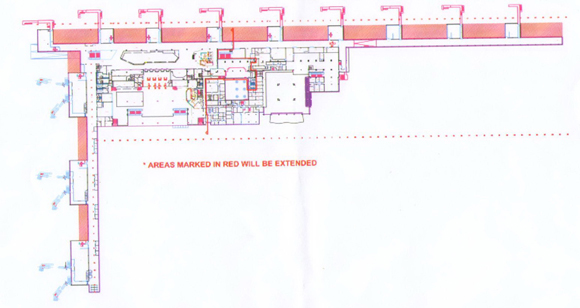 Proširenje traznitne zone odvijaće se u četiri faze. U prvoj fazi predviđeno je doziđivanje terminala u postojećem nivou naspram gejtova C1-2 i A1 do A5. Time će se dobiti dodatnih 2.750 kvadrata. U drugoj fazi će se dozidati "C" hodnik naspram gejtova C3-4 i C5-6 čime će biti povećana površina za novih 350 kvadrata. Trećom fazom obuhvaćen je udaljeni deo "A" hodnika počev od gejta A6 koji će povećati površinu za novih 1.900 kvadrata. Poslednja faza obuvatiće izgradnju dodatnih 4.900 kvadrata koji će biti u okviru potpuno novog gornjeg nivoa.