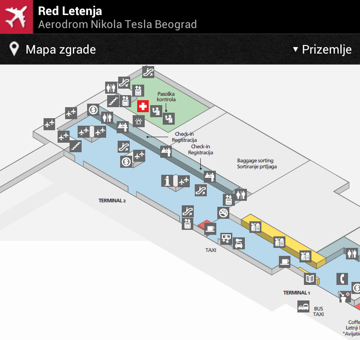 Red letenja beogradskog aerodroma za pametne mobilne telefone je veoma jednostavna i korisna aplikacija, koja se za kratko vreme može preuzeti i instalirati. Njena osnovna funkcija je prikaz aktuelnog reda letenja na beogradskom aerodromu "Nikola Tesla". Ovo je veoma korisno za putnike koji na taj način mogu bolje isplanirati svoje vreme, kao i za sve one koji nekoga čekaju na aerodromu. Pregledom aktuelnih dolazaka i odlazaka korisnik ima mogućnost da se prijavi za obaveštavanje o statusu leta putem SMS-a.