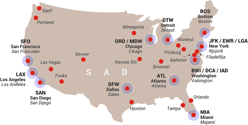Pogledajte detaljan prikaz najvažnijih destinacija u SAD