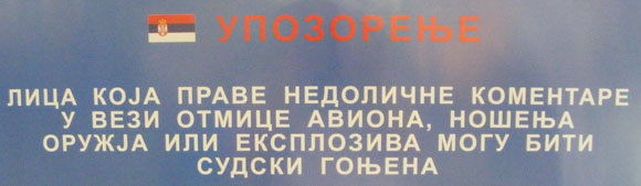Bilo je mnoštvo primera iz sveta da je putnicima uskraćeno ukrcavanje ili da su izbačeni iz aviona pre samog poletanja samo zbog nekakve nepromišljene šale. Zato se treba paziti izjava tipa: “Nemojte tu torbu, tu mi stoji bomba”. Ma koliko bili dobar ili loš šaljivdžija ovakve izjave na aerodromu mogu vam napraviti ozbiljne probleme.Bezbednosni i sigurnosni razlozi