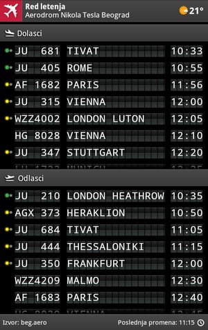 U Srbiji je veoma popularna Android aplikacija “Red letenja” koja pokriva aktuelni red letenja na aerodromu “Nikola Tesla” Beograd.