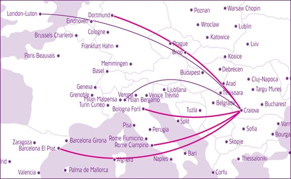 Postojeća linije iz Krajove do Londona će biti pojačana sa dva na tri leta nedeljno, a do Milana (aerodrom Bergamo) sa dva na četiri leta nedeljno.